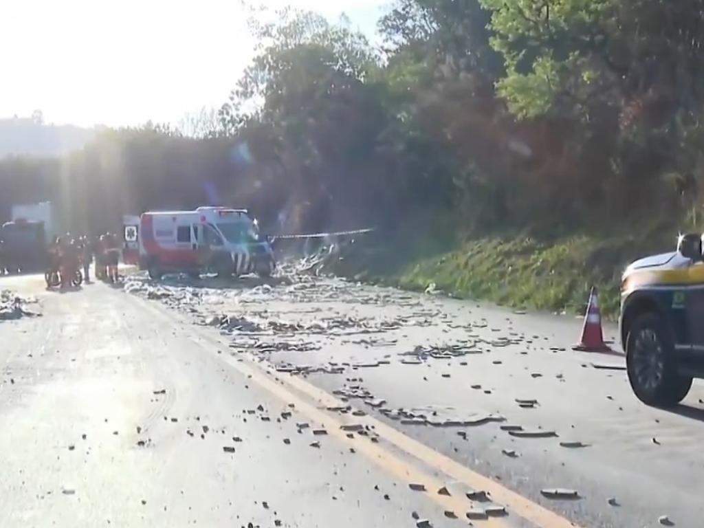 Um caminhão carregado com placa de granito tombou no km 438. O caminhoneiro não resistiu aos ferimentos e morreu no local. A informação inicial é que o homem foi ejetado do veículo.