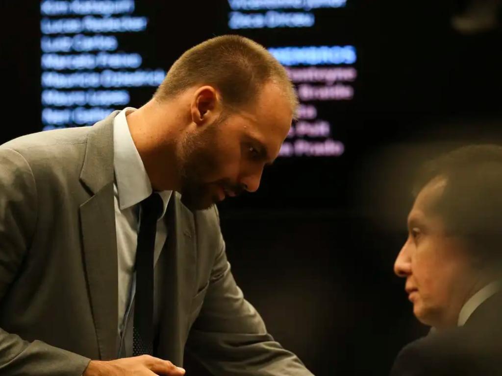O deputado está nos Estados Unidos e é acusado de fomentar as sanções comerciais do governo do presidente Donald Trump contra as exportações brasileiras, a aplicação da Lei Magnitsky e a suspensão de vistos dos ministros da Corte e integrantes do governo federal.