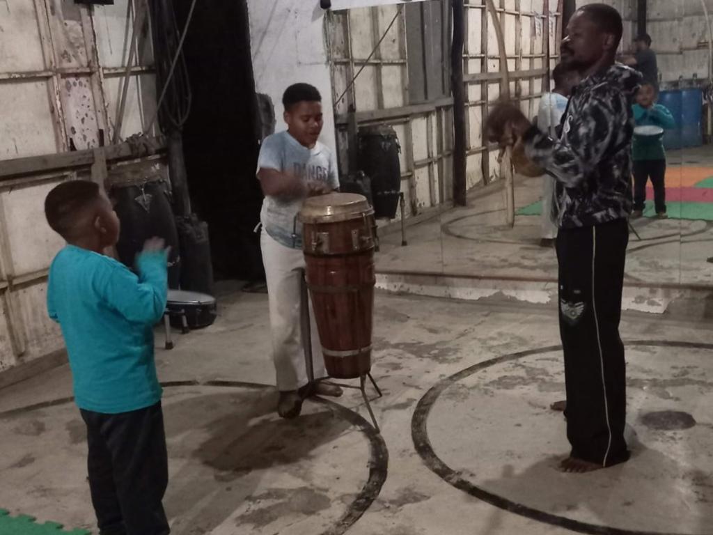 Crianças da comunidade Jardim Vitória aprendem sobre disciplina em aulas de pandeiro e capoeira