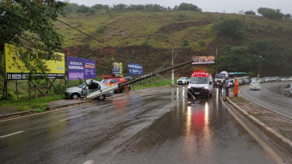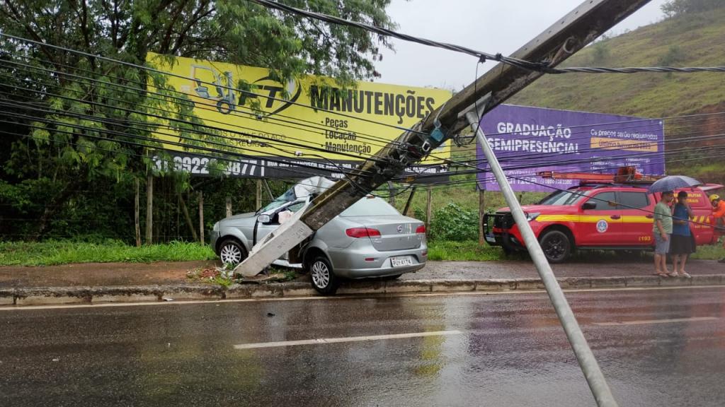 Um Fiat Siena de cor cinza bateu em um poste de energia elétrica por volta das 8h30 da manhã deste sábado (8), na avenida Presidente Tancredo Neves, no bairro Caladinho de Cima, em Coronel Fabriciano, na pista sentido Centro da cidade. A via estava molhada no momento do ocorrido, devido à chuva que cai sobre a cidade desde a madrugada.