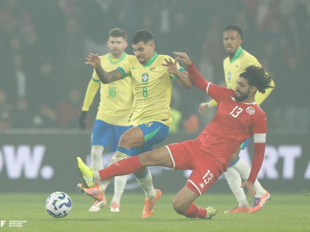 No último amistoso do ano, a seleção brasileira empatou com a Tunísia por 1 a 1, em duelo realizado na tarde desta terça-feira (18), no Decathlon Stadium, em Lille, na França. Essa foi a última oportunidade de 2025 para o técnico italiano Carlo Ancelotti testar os jogadores na equipe. A Tunísia abriu o placar com Mastouri e Estêvão empatou para o Brasil. Os próximos compromissos da seleção brasileira antes da Copa do Mundo serão em março de 2026, contra França e Croácia, nos Estados Unidos.