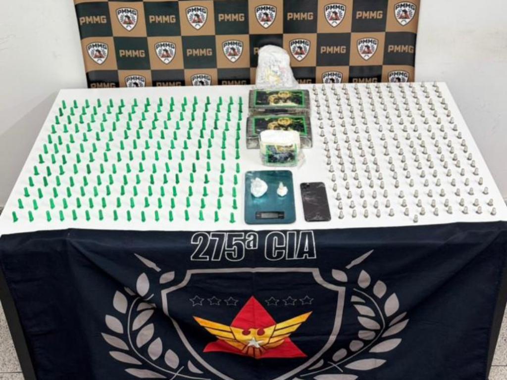 Material recolhido na noite de quarta-feira, no bairro Contente; dois homens foram presos acusados de envolvimento com o tráfico Dois indivíduos foram presos, na noite de quarta-feira (19), acusados de envolvimento com o tráfico de drogas em Coronel Fabriciano. A ação ocorreu na rua Taguara, no bairro Contente, e resultou na prisão de um indivíduo de 32 anos e outro, de 39. Foram recolhidos 401 pinos de cocaína, quatro barras da mesma droga, uma balança, um telefone celular e duas porções de cocaína.