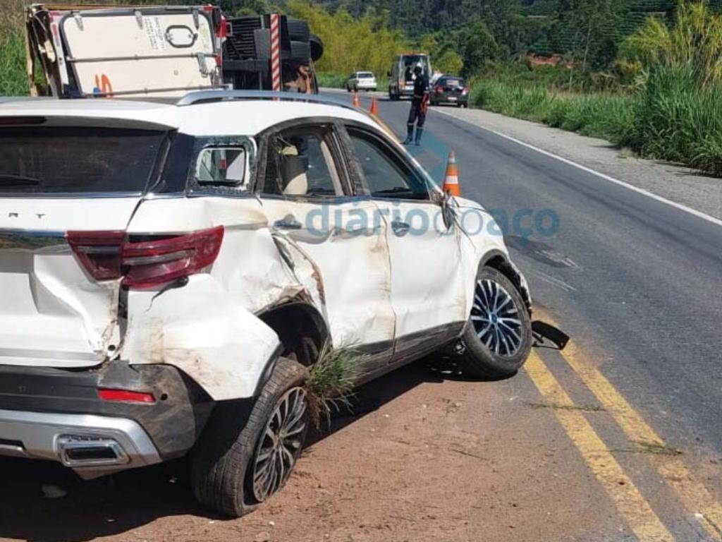 Carro em que viajavam pai e filho de Ipatinga foi atingido pelo caminhão que descia esse trecho da BR-262, invadiu a contramão e tombou
