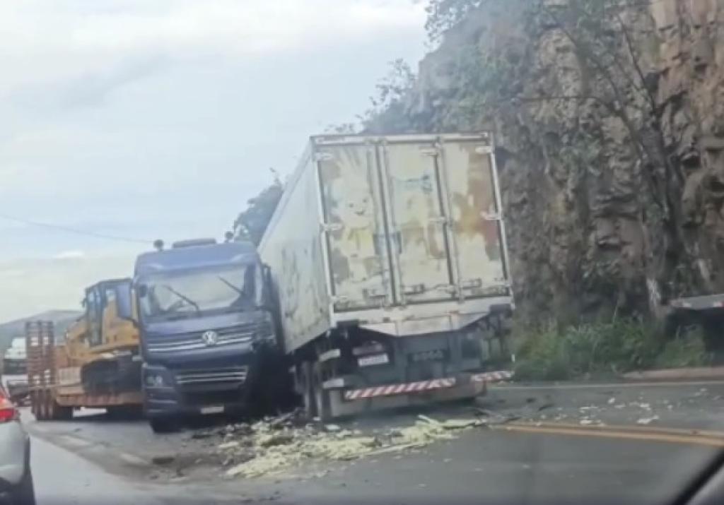 Colisão entre dois caminhões na BR-381 em Ravena fechou o trânsito no começo da manhã