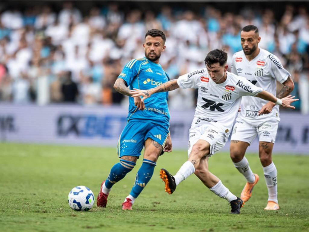 O Cruzeiro perdeu para o Santos por 3x0 na tarde deste domingo (7), em jogo disputado na Vila Belmiro, válido pela 38ª rodada do Campeonato Brasileiro. Os gols foram marcados por Thaciano (duas vezes) e João Schmidt.O time santista começou ditando o ritmo, para não só garantir a permanência na Série A, como carimbar uma vaga em torneio continental no próximo ano. Aos 25 minutos do primeiro tempo, Thaciano desviou de cabeça no primeiro poste, após escanteio cobrado por Guilherme e abriu o placar. Um minuto depois, após bela jogada pela direita, Thaciano voltou a marcar, ao escorar cruzamento rasteiro feito por Igor Vinícius.