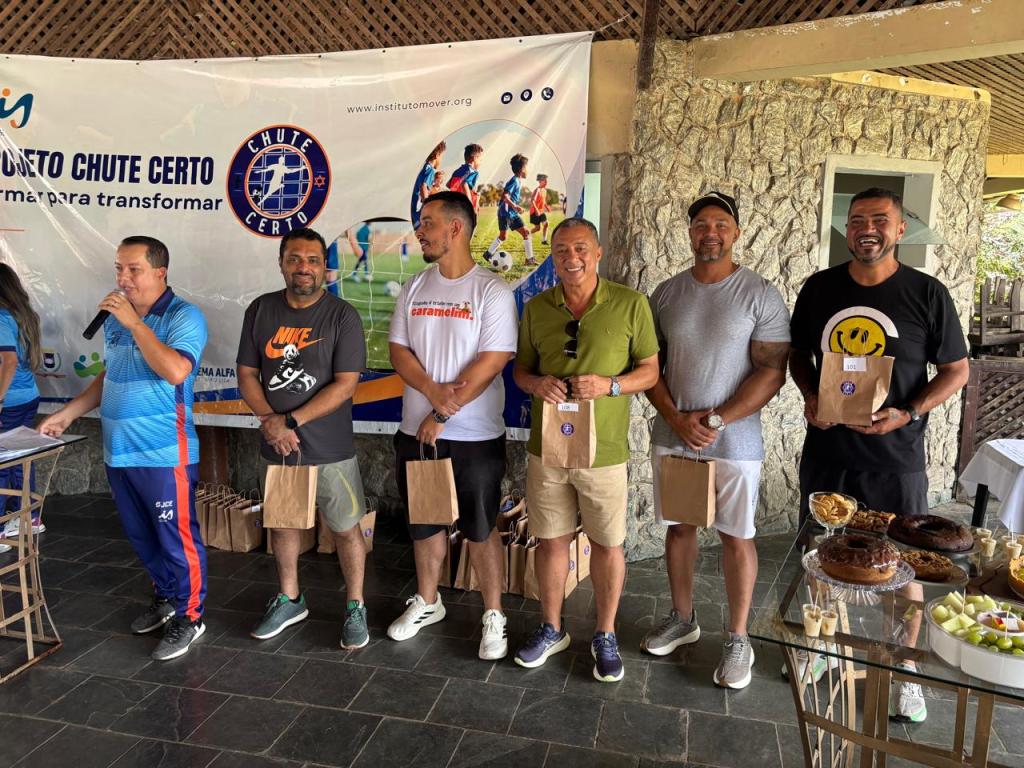 Higor Carlech, ao lado da esposa Amanda Carlech e também atuante no Chute Certo, aproveitou a solenidade do último sábado para, antes da apresentação das instalações do Departamento Médico, presentear dezenas de apoiadores com uma camisa personalizada e contar a história de evolução do projeto.