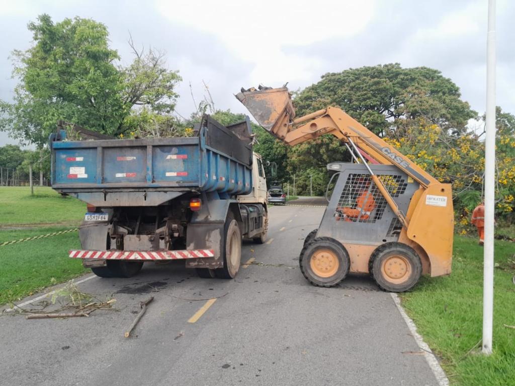 Durante o final de semana, uma força-tarefa foi mobilizada para normalizar os pontos afetados por alagamentos e quedas de árvores em diferentes regiões da cidade. Os trabalhos prosseguem pelos próximos dias e contam com o apoio de 33 caminhões (carroceria, basculante, compactador, munck e hidrojato), um triturador de galhos, cinco máquinas, entre pás carregadeiras e retroescavadeiras, além de aproximadamente 200 profissionais envolvidos diretamente nas ações.