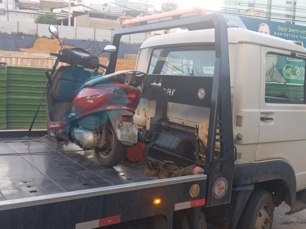 A PM confirmou ter sido constatado que o condutor não tem habilitação e que a motocicleta estava com o licenciamento atrasadoDiante das irregularidades, o veículo foi removido para um pátio credenciado do Detran, e foram lavrados os autos de infração de trânsito cabíveis.