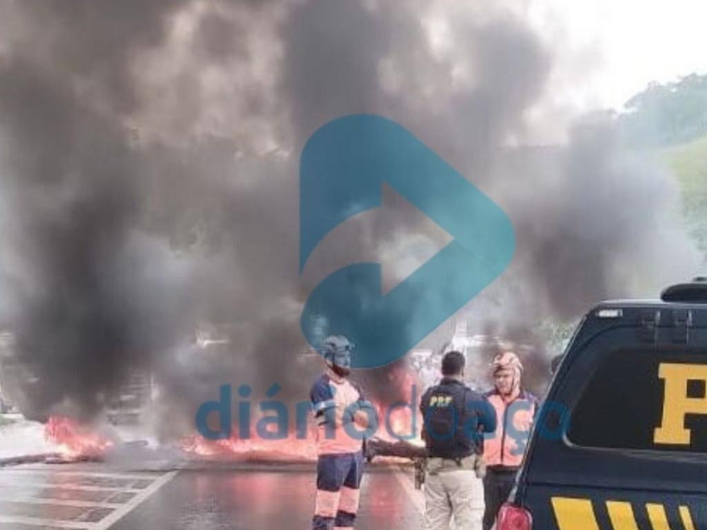 Foi ateado fogo em pneus e uma fila quilométrica se estende pela rodovia. A Polícia Rodoviária Federal (PRF) e a empresa Nova 381, que administra o trecho, estão no local e acompanham de perto os protestos.
