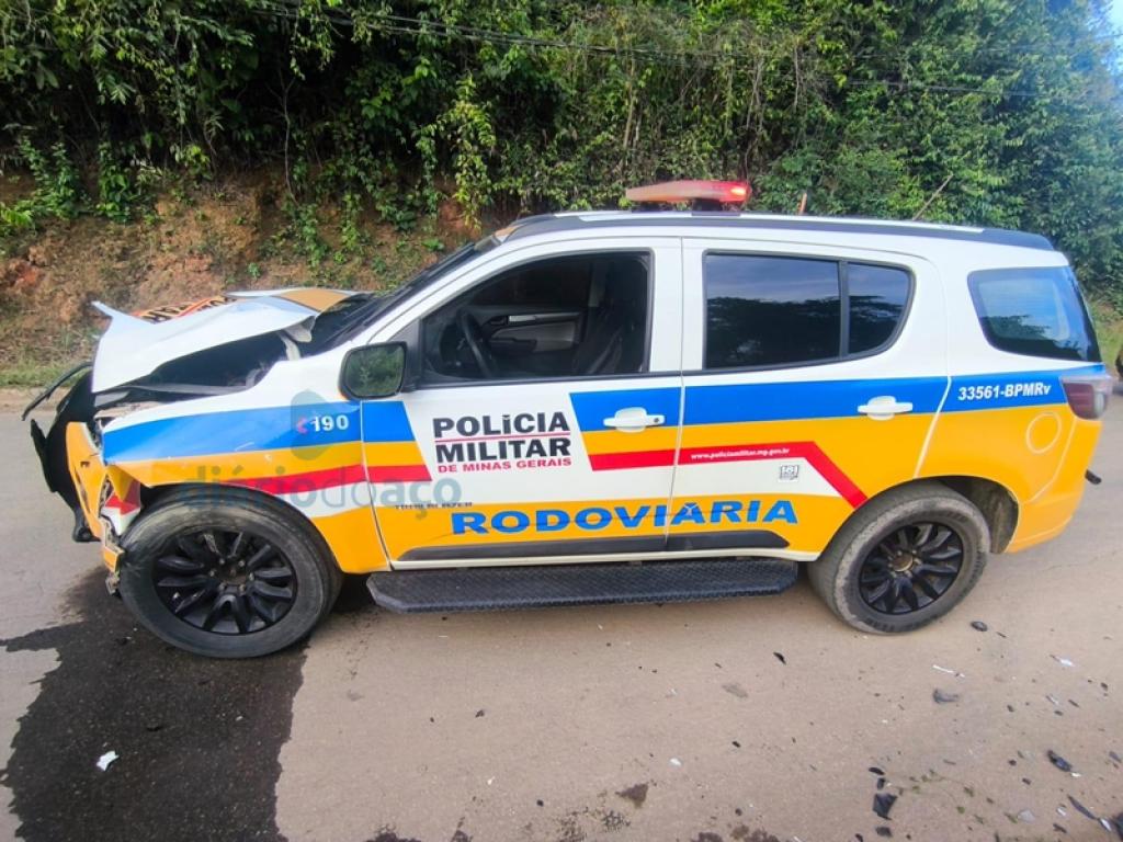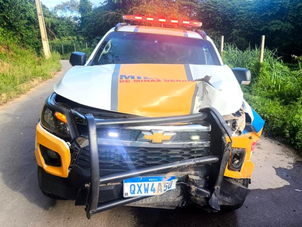 Viatura da PM e BMW colidem durante perseguição a veículo clonado no Vale do Aço