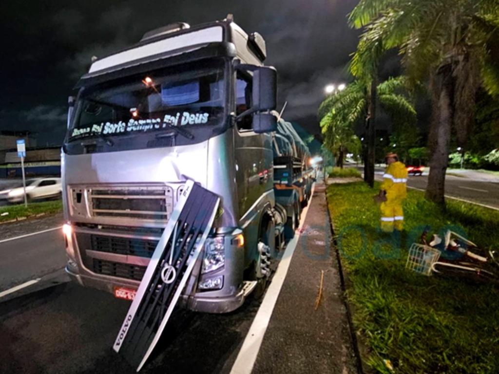 A bicicleta da vítima ficou caída junto ao canteiro central da rodovia na noite de segunda-feiraUm grave acidente de trânsito foi registrado na avenida Pedro Linhares Gomes, trecho urbano da BR-381, em Ipatinga. A ocorrência envolveu um caminhão que tracionava uma carreta e atropelou uma pedestre que empurrava uma bicicleta, no momento em que ela tentava atravessar a rodovia nas proximidades do atacarejo Villefort, entre os bairros Veneza I e Jardim Panorama. O local é palco de constantes acidentes fatais.