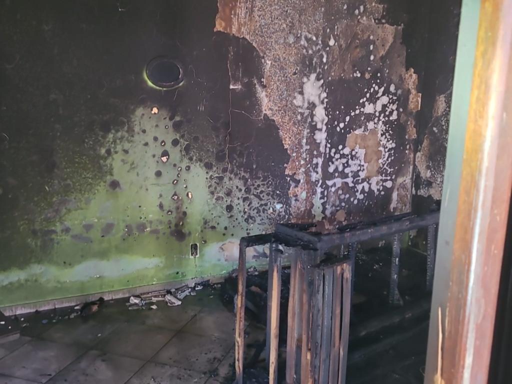 Ao chegar ao local, a guarnição encontrou o portão de entrada e uma das portas de acesso ao imóvel já arrombados. Havia um homem no interior da residência com um balde na mão, informando que o fogo já havia sido apagado. Após vistoria, os bombeiros constataram dois focos de incêndio: um em um sofá no pavimento térreo e outro em um guarda-roupas no segundo pavimento.