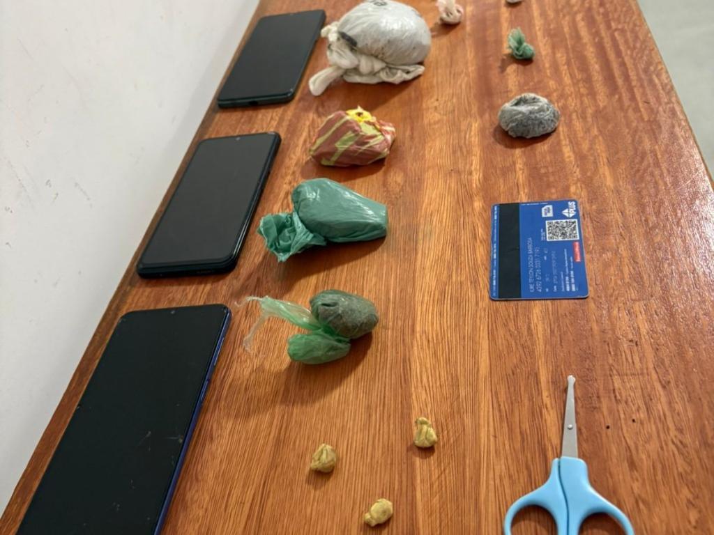 Durante a ação, os militares observaram o momento em que uma mochila foi entregue a um adolescente que transitava em uma bicicleta. O menor de idade foi abordado e, após buscas, os policiais localizaram, no interior da mochila, porções de substâncias análogas à maconha e ao crack, além de uma tesoura.Ao ser questionado, o adolescente informou que apenas transportava o material a pedido de terceiros. A partir das informações repassadas, a guarnição iniciou diligências complementares e conseguiu abordar dois adultos envolvidos no esquema.