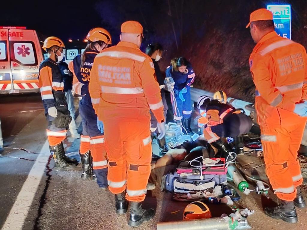 O Corpo de Bombeiros foi acionado para atender a uma ocorrência de queda de motocicleta com vítima. No local, uma equipe da empresa Medicare prestou os primeiros atendimentos, com apoio de outra equipe do Serviço de Atendimento Móvel de Urgência (Samu). A médica do Samu constatou o óbito do condutor ainda na rodovia.