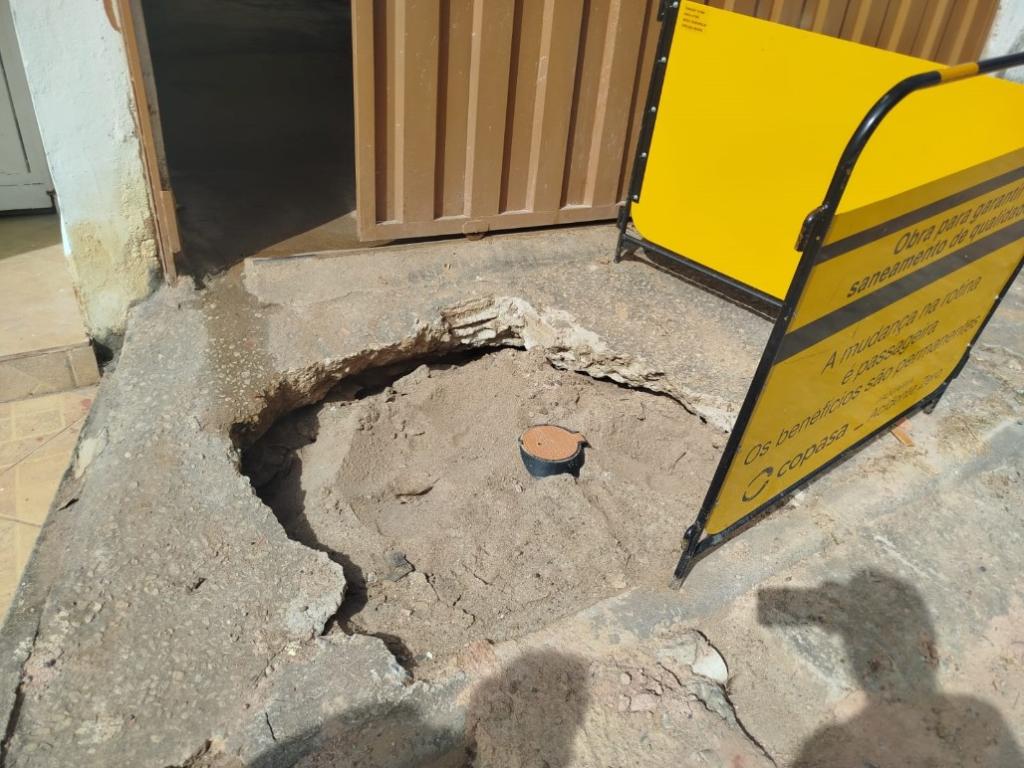 A Copasa só veio aqui porque vocês publicaram aquela reportagem, vieram, deixaram o buraco e está até hoje aberto”, voltou a reclamar Altair, que entrou mais uma vez em contato com o Diário do Aço na manhã desta quinta-feira (29/1). Segundo ele, após o serviço, a Copasa deixou um buraco aberto em frente a uma das residências, com parte do piso sem concretagem, coberto apenas por areia. Além disso, uma placa da companhia foi colocada em frente ao portão de acesso da casa, que também serve como entrada de garagem, impedindo a entrada e saída de veículos e atrapalhando a locomoção de pedestres pela calçada.