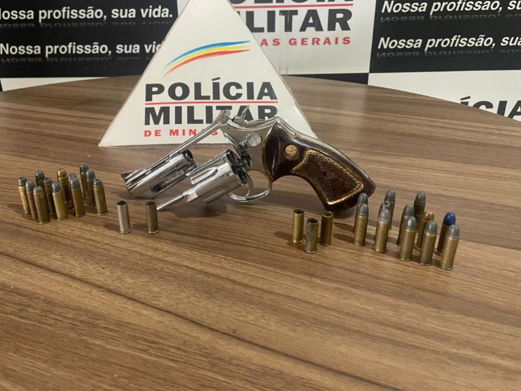 Durante as diligências na residência do suspeito, os militares localizaram e apreenderam um revólver calibre .38, que estava carregado com seis munições. No local também foram encontradas munições intactas e cartuchos já deflagrados.
