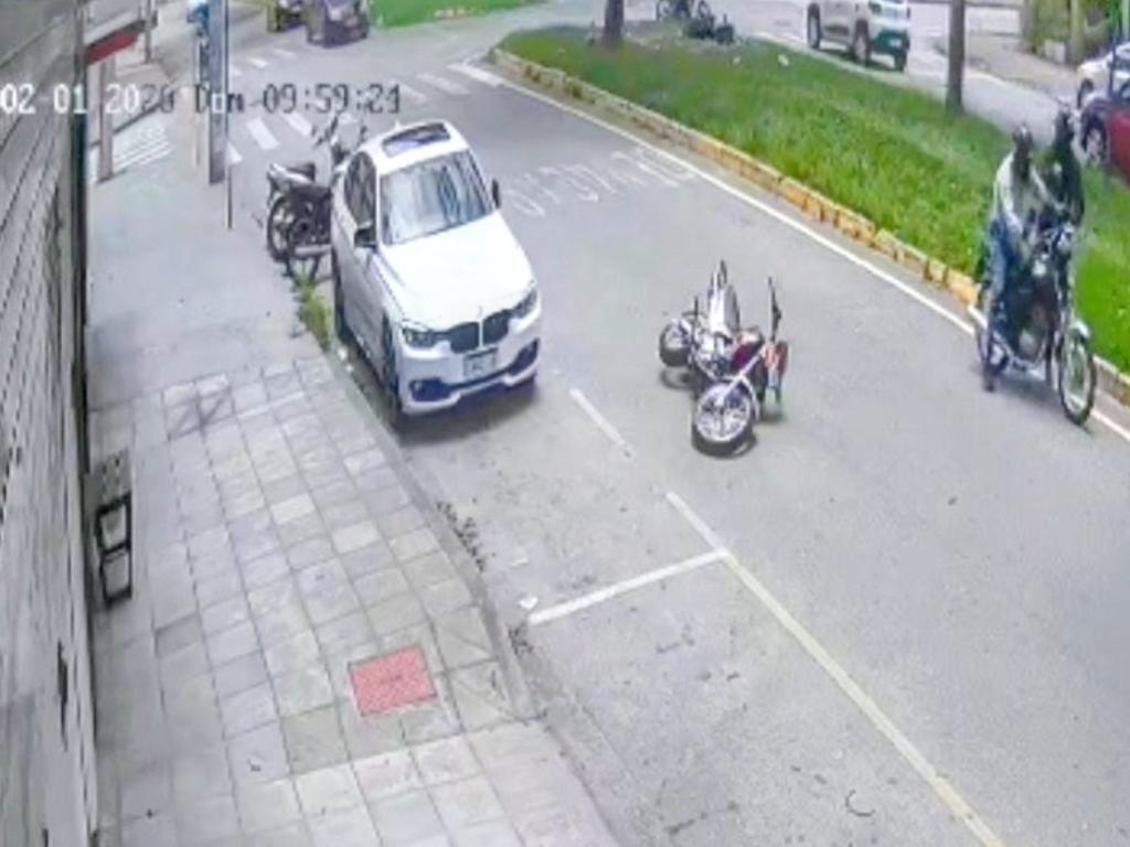 Após a abordagem, o assaltante toma a motocicleta da vítima. Em seguida, os dois indivíduos montam no veículo roubado e fogem do local. A motocicleta que eles tentaram levar anteriormente foi abandonada, caída sobre a pista da avenida Londrina.