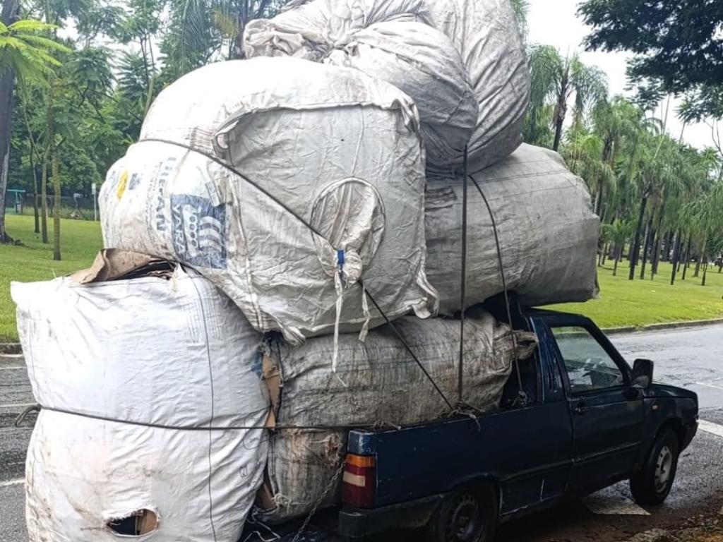 Conforme a PM Rodoviária, a equipe se deparou com um Fiat Uno Picape que transportava carga excedente de material reciclável. Após o veículo transpor uma sinalização semafórica na rodovia, foi feita a abordagem pela guarnição.