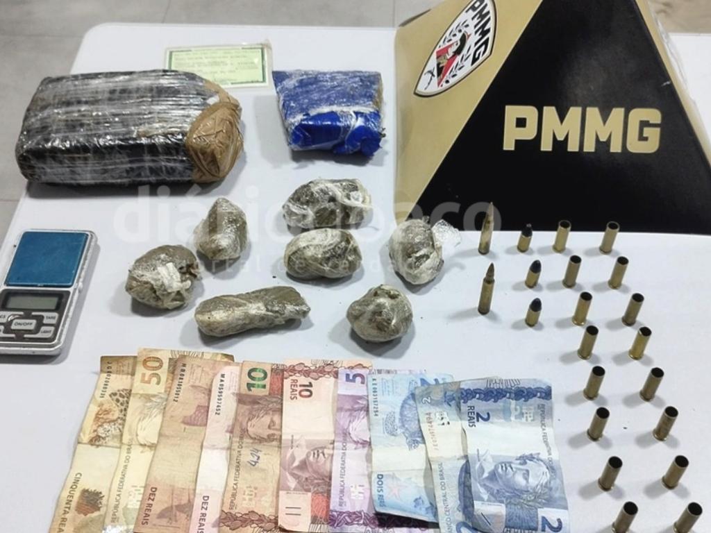 Com autorização da mãe do autor, os policiais realizaram buscas na residência, onde foram apreendidos dois tabletes e sete porções de maconha, uma balança de precisão, R$ 151, dois cartuchos de calibre 5.56 intactos, três de 9 mm intactos e 16 cartuchos deflagrados de calibre .38.Em consulta ao sistema, foi constatado que havia um mandado de prisão contra o abordado, expedido pela Comarca de Ipatinga. Após a prisão, o homem foi encaminhado à UPA Canaã, onde passou por atendimento médico. Em seguida, foi conduzido ao plantão da 1ª Delegacia Regional de Polícia Civil após a confecção da ocorrência