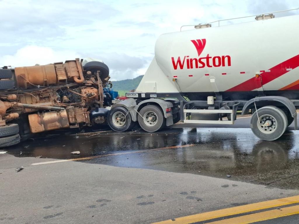 Batida entre três carretas mobiliza resgate aéreo e bloqueia BR-381 em Monlevade