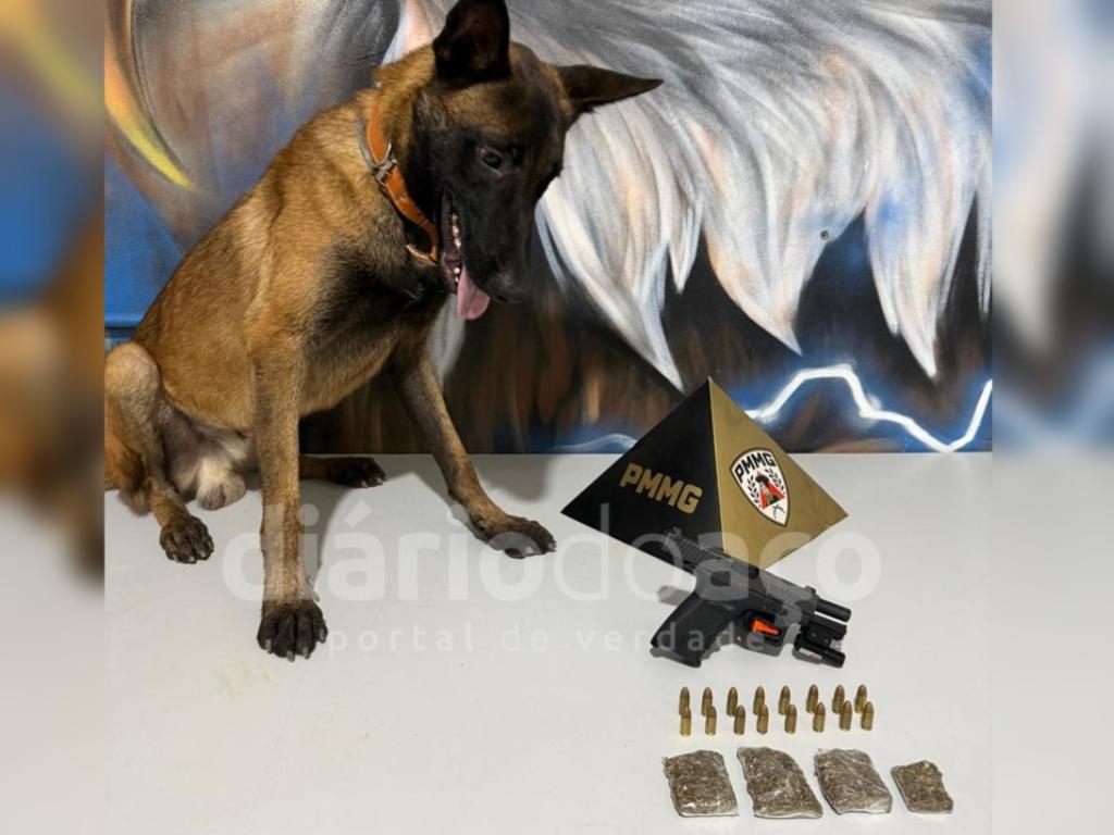 O cão Volvo participou das buscas na residência de um dos suspeitos abordados pela PMDois jovens, ambos com 26 anos, foram presos na manhã desta segunda-feira (9) suspeitos de envolvimento com tráfico de drogas e posse ilegal de arma de fogo no bairro Cidade Nova, em Santana do Paraíso. Após denúncias anônimas, os policiais militares abordaram os suspeitos e apreenderam o material ilícito na casa de um dos abordados.