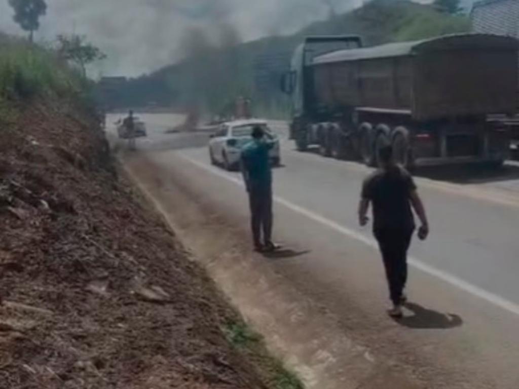 Um acidente entre uma motocicleta e um caminhão deixou um homem morto e provocou a interdição da BR-381, na altura do km 344, em João Monlevade, no Médio Piracicaba, nesta sexta-feira (3). A ocorrência foi registrada na região do bairro Tanquinho.Imagens a qual o Diário do Aço teve acesso mostram a motocicleta em chamas entre as duas pistas da rodovia após o impacto. O nome da vítima não foi revelado