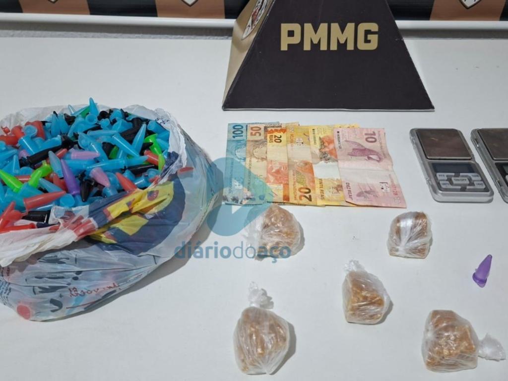 Conforme apurado pelo plantão do Diário do Aço junto às fontes da Polícia Militar, equipes receberam denúncias de que M.F.M., de 28 anos, estaria comercializando drogas nas ruas Mariana e Boa Esperança. As informações indicavam que o suspeito escondia os entorpecentes em buracos de muros e buscava o material para vender a usuários em um bar da localidade, onde o homem foi abordado.
