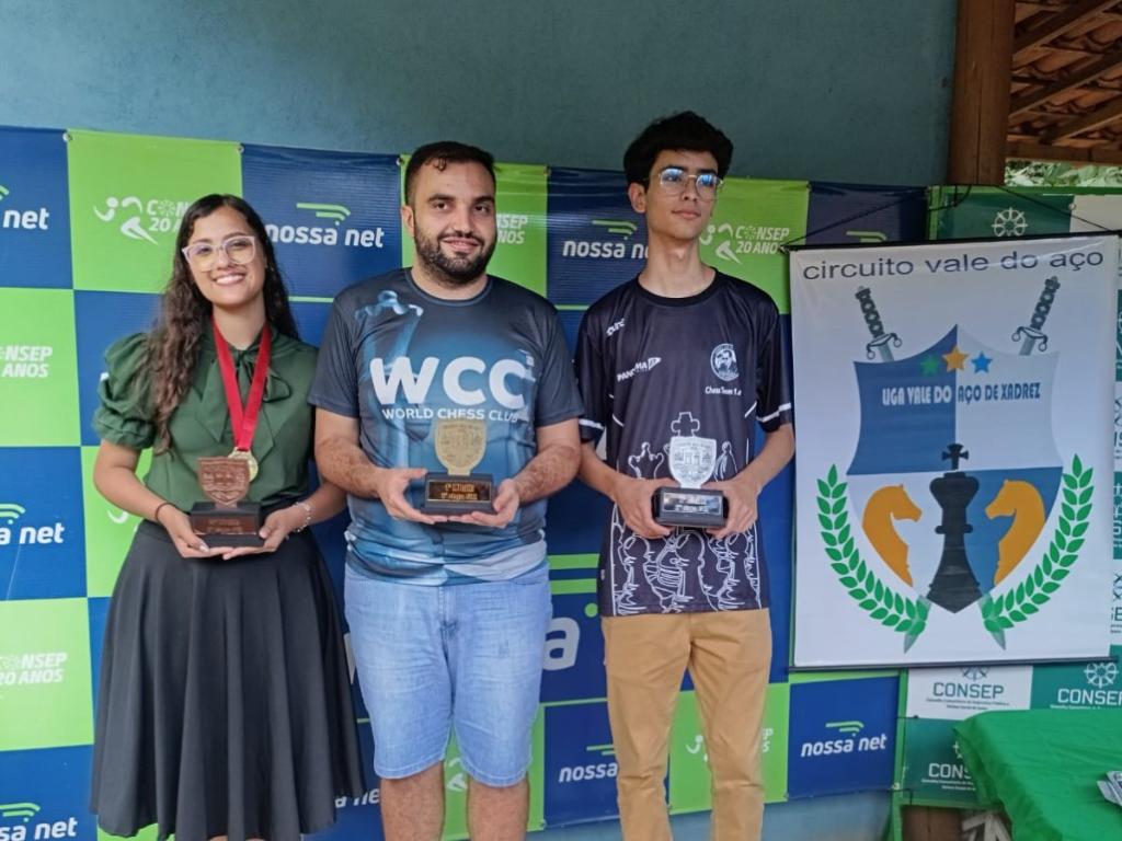 Logo atrás, a força regional do Vale do Aço se fez presente. Raul Rodrigues, de Ipatinga, conquistou o segundo lugar após uma performance sólida. O terceiro lugar também ficou com Ipatinga: Yasmin garantiu sua posição no pódio, reforçando o crescimento e a representatividade feminina no xadrez competitivo.