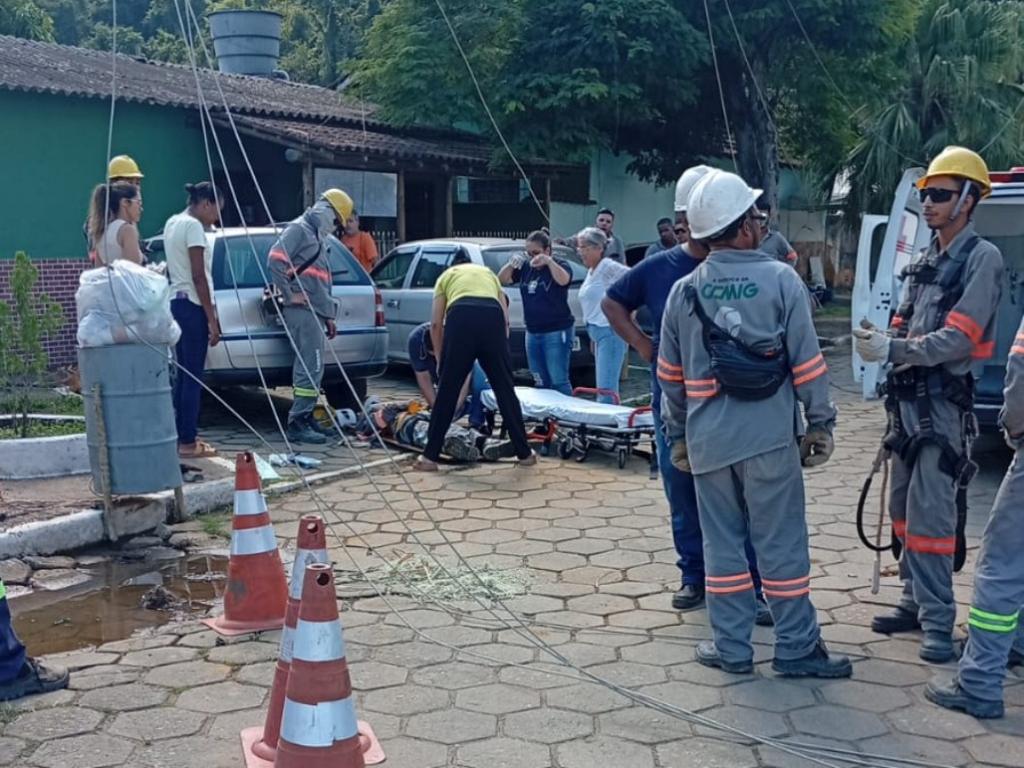 Prestador de serviços da Cemig foi socorrido após sofrer descarga elétrica durante obra; circunstâncias do acidente são apuradas