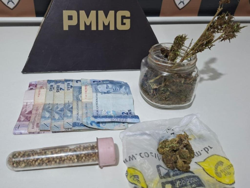 Duas pessoas são presas e um terceiro indivíduo é identificado em ocorrência que resultou na apreensão de skunk, planta de cannabis e dinheiro