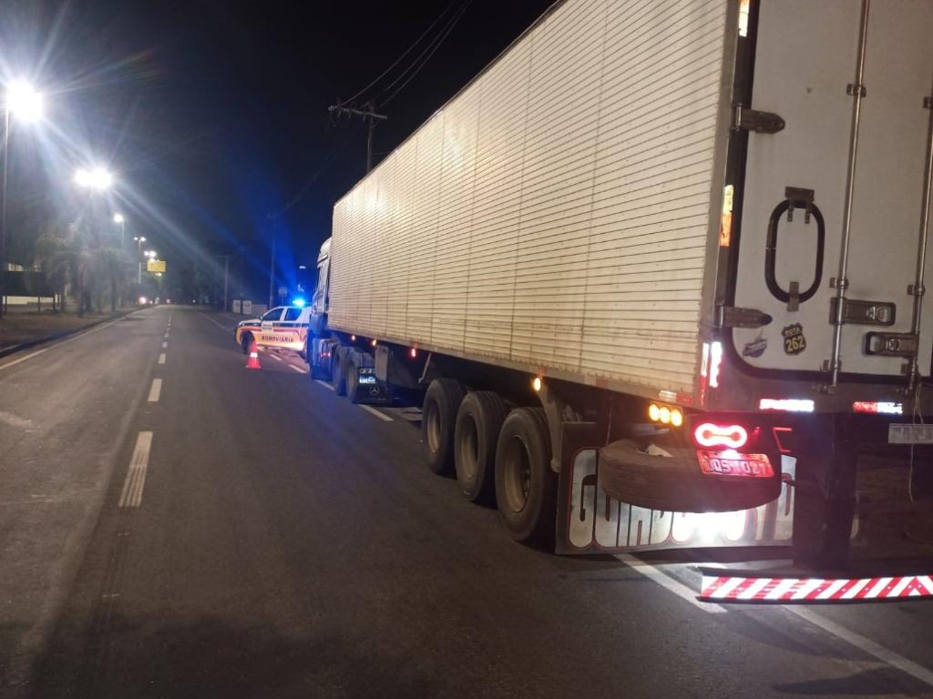 Homem de 42 anos conduzia um caminhão com documentação irregular e foi flagrado com comprimidos de rebite, maconha e outros materiais