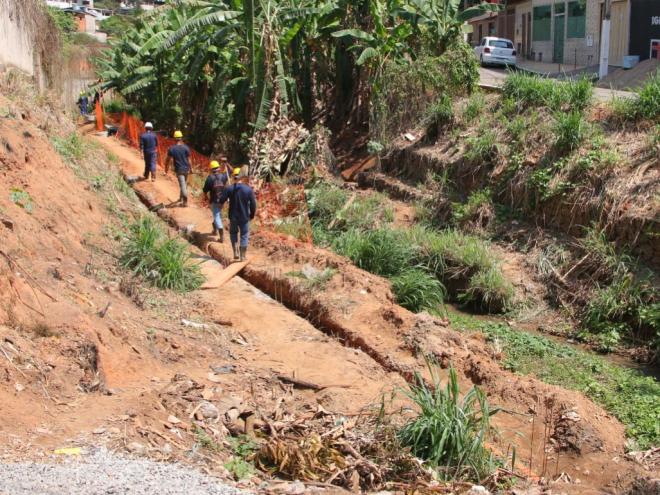 A ampliação da rede de esgotamento sanitário no distrito de Cachoeira do Vale e nos bairros Santa Rita e Vieiras, em Timóteo, está em andamento desde setembro