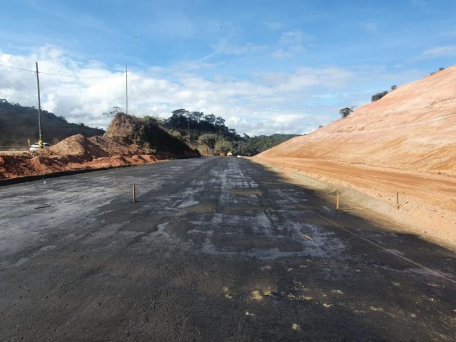 Após seis meses em obra de recuperação, o trecho do km 321 da BR-381, em Nova Era, começa a receber pavimentação asfáltica