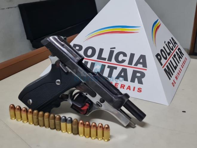 Uma pistola semiautomática, de calibre 380, foi apreendida pela Polícia Militar na rua Dois, do bairro Planalto, em Ipatinga