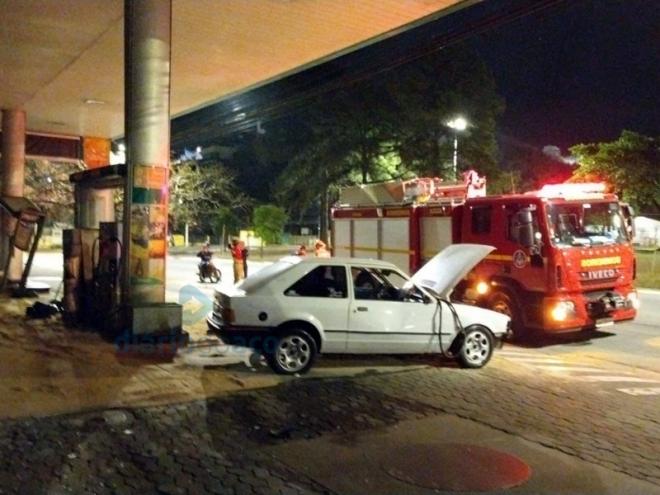 Um acidente de trânsito mobilizou equipes do Corpo de Bombeiros por causa do risco de incêndio em um posto de combustíveis, na avenida JK, no bairro Jardim Panorama, em Ipatinga