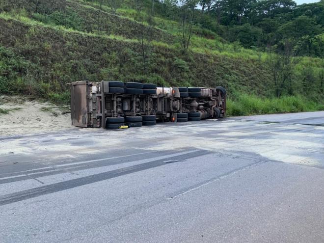 O tombamento de um caminhão, ocorrido no fim da madrugada desta sexta-feira, na MG-120, estrada que liga Itabira a Nova Era, deixou ferido o condutor do veículo, que tracionava uma carreta basculante