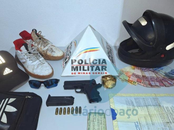 Arma e moto furtada foram apreendidas na noite de domingo (25) após uma perseguição policial que resultou em troca de tiros envolvendo policiais militares e os suspeitos
