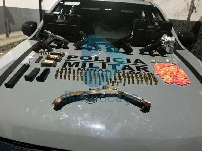 Três investigados por envolvimento com tráfico de drogas e armas ilegais foram presos no bairro Amaro Lanari, em Coronel Fabriciano, durante uma operação do Batalhão Rotam (Rondas Táticas Metropolitanas) de Belo Horizonte
